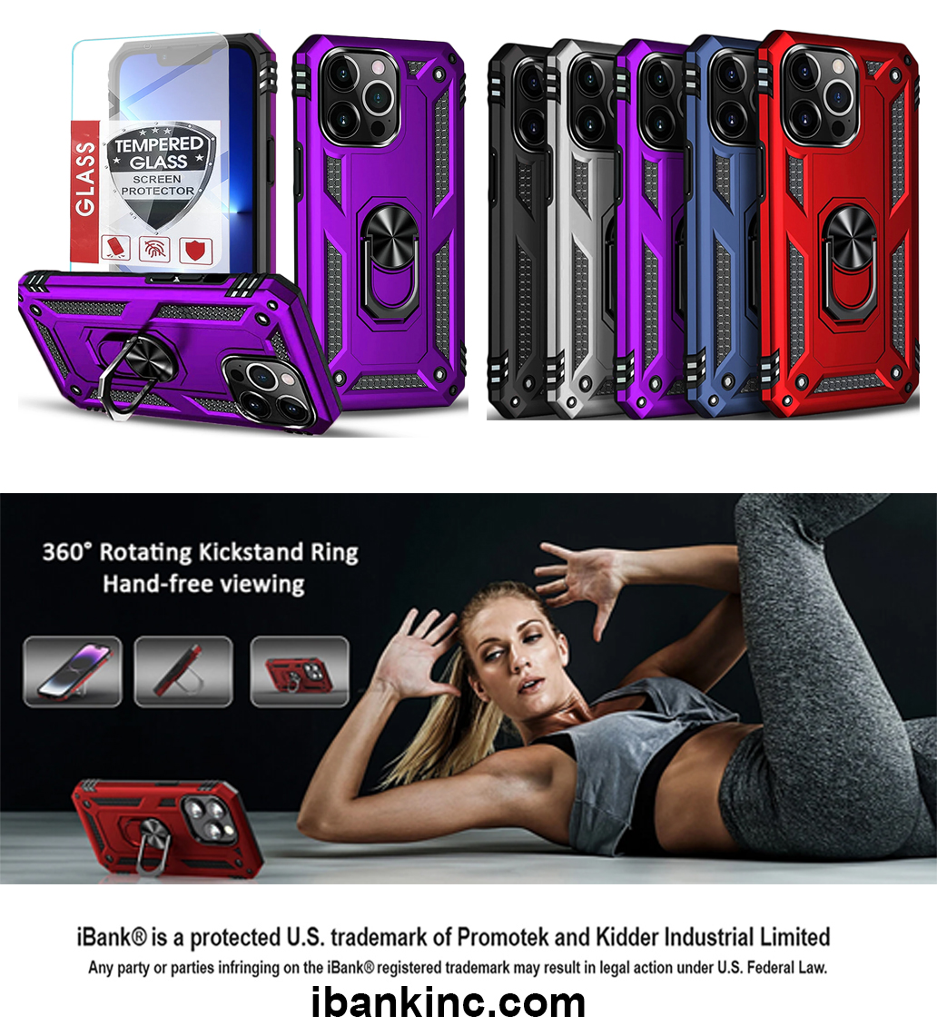 iBank ® Metal Ring Holder Case compatible with iPhone 17/26/15/14 Pro Max Air + Tempered Glass