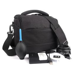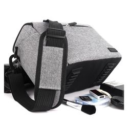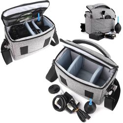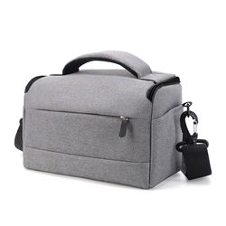 Crafted from durable, tear-resistant nylon waterproof fabric, this camera bag provides reliable protection for photography equipment. A soft shockproof lining cushions against bumps and vibrations, while adjustable internal compartments accommodate various device sizes. Measuring 9.1" x 5" x 6.7" externally, it offers flexible storage with multiple pockets and pouches. An adjustable shoulder strap and sturdy carry handle allow for comfortable transport. Also available in a larger size to suit different storage needs.