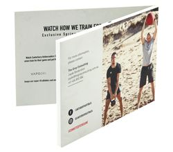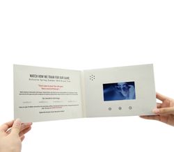 This hot new product is a four color process offset printed card stock video brochure which has a built in LCD video display so a customer can see and hear the marketing message. We will load your video. These high end brochures play videos to go way beyond a simple brochure to really bring your marketing message to life. These can be made custom at any side you prefer and you can even choose different LCD screen sizes to suit your specific needs. Best for business gift, advertisement or personal wedding invitation. LEAD TIME: 30 BUSINESS DAYS