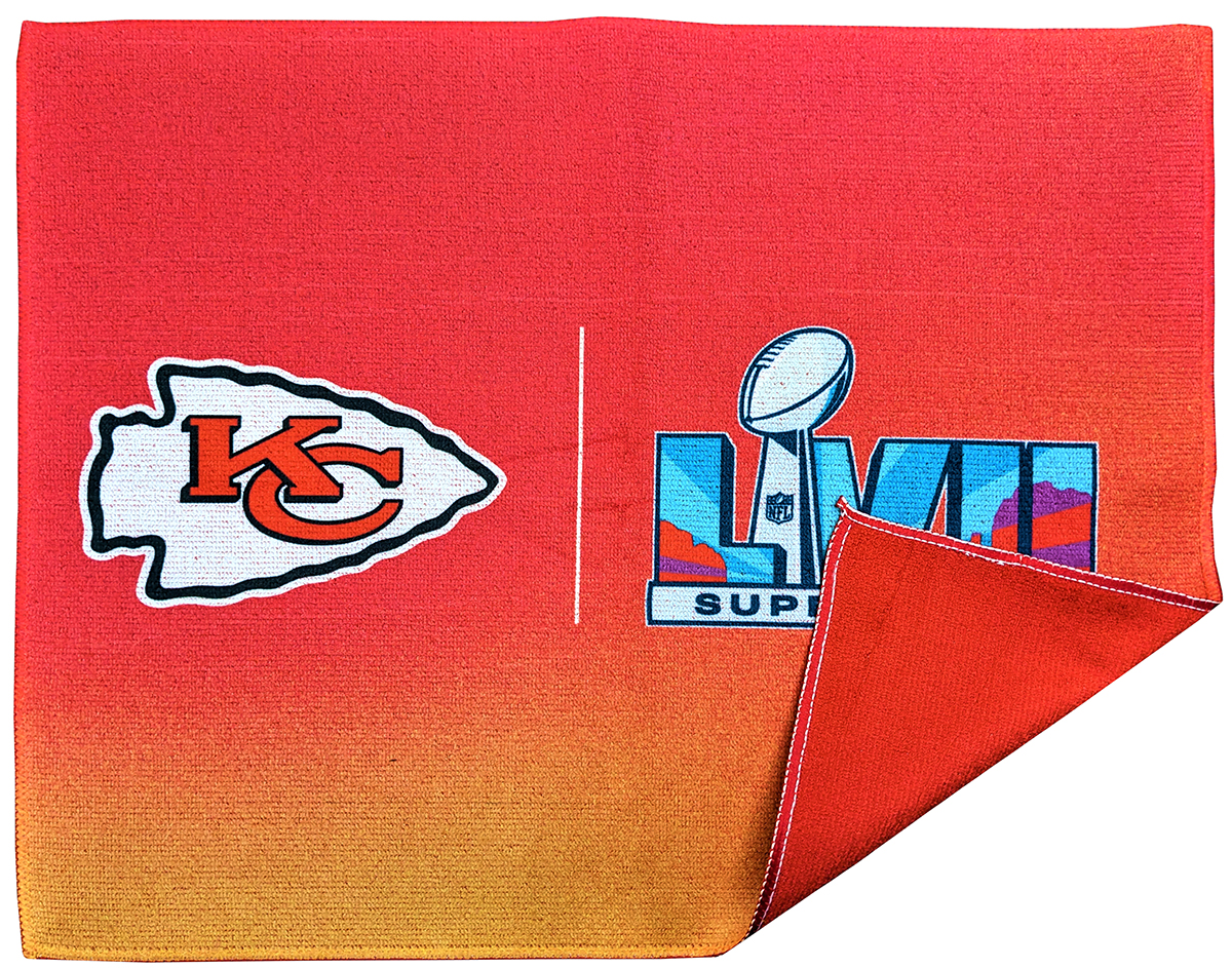 Rally towel in team colors. Get the rally towel that stands out with edge to edge sublimation. Microfiber dri-lite Terry Rally, Sports, Skate towel can be sublimated in every PMS color or with full color logo(s) to show your full creativity. Sublimation creates sharp images that won't fade or flake after washes. Use for Hockey Games, Basketball, Baseball, Football, Soccer, Lacrosse, Corporate Events, Sporting Events, Event Rallies. Price includes full color sublimation print. Max Imprint: 15" x 18"L. No set-up fees when camera-ready art is provided.
