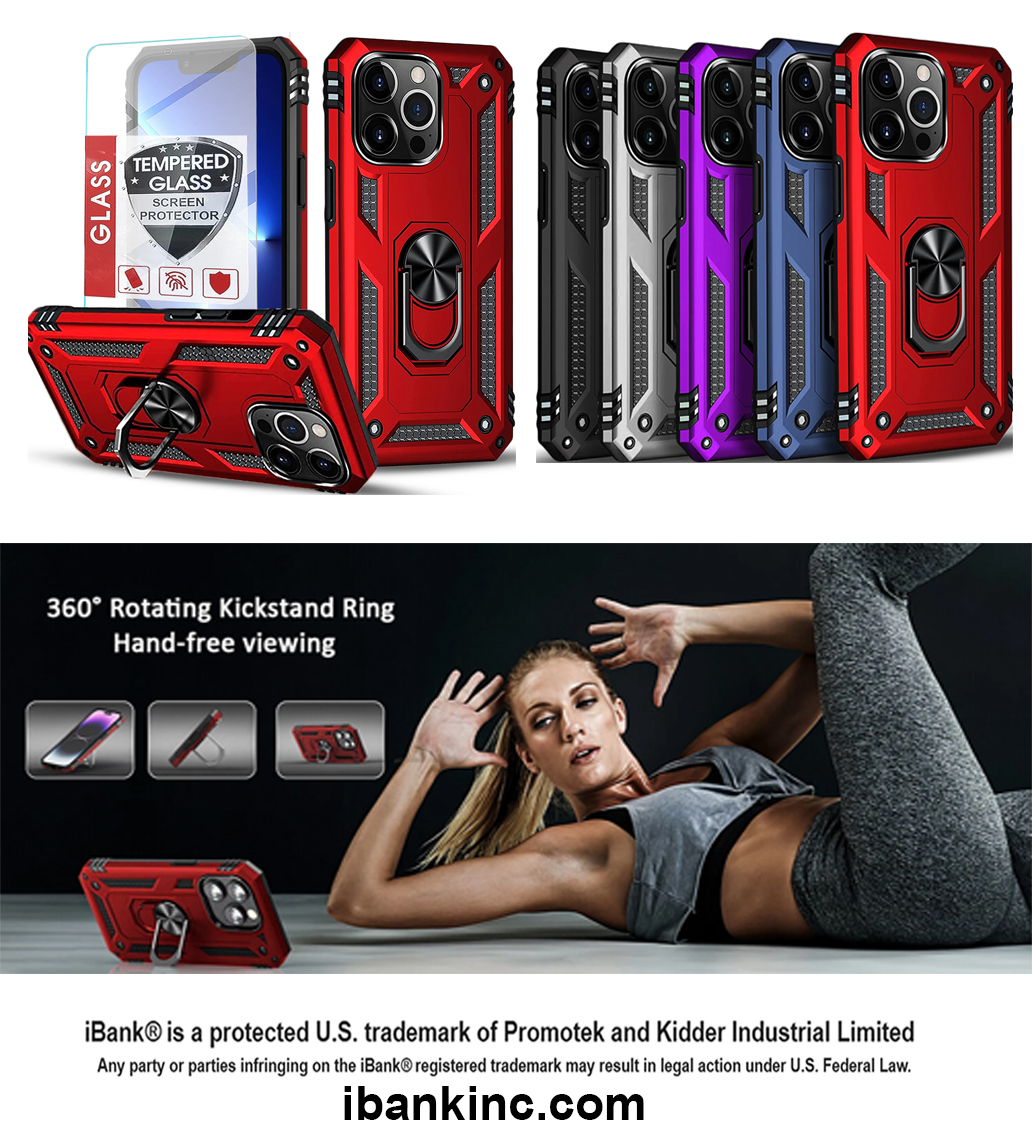 iBank ® Metal Ring Holder Case compatible with iPhone 17/26/15/14 Pro Max Air + Tempered Glass