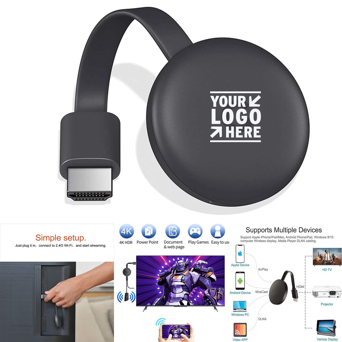 4K 1080P WiFi Streaming Movies HDMI Display Dongle Adapter Live TV Receiver from Phone PC