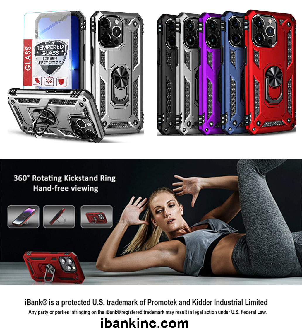 iBank ® Metal Ring Holder Case compatible with iPhone 17/26/15/14 Pro Max Air + Tempered Glass