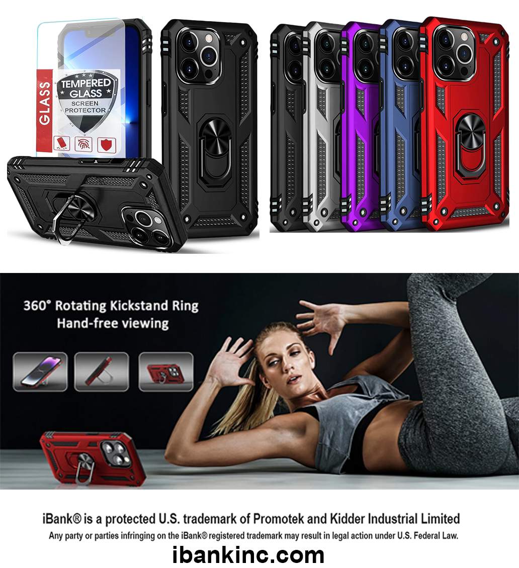 iBank ® Metal Ring Holder Case compatible with iPhone 17/26/15/14 Pro Max Air + Tempered Glass