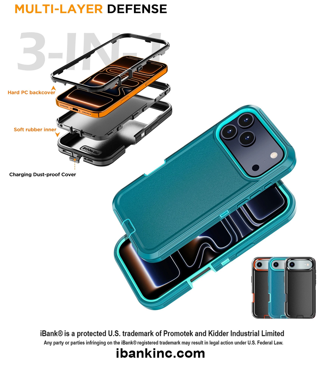 iBank ® Shockproof Heavy Duty Defender Case compatible with iPhone 17 Pro Max/Air/17 Pro Case