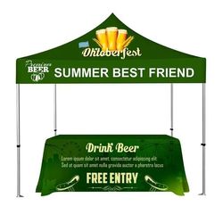 Introducing your perfect Tent Package for any event. Are you looking for a one-stop-shop alternative to sifting through all the choices and combinations of products available? Let us do the work for you! We've chosen some of our most popular displays to suit a variety of occasions. This Tent Package includes: 10' Square Canopy Tent, and 6' Customized Throw Style Table Cover. This package is perfect for trade shows, tailgating, festivals, fairs, fundraising events, and more. Tent Accessories include: frame, canopy, stake and rope kit, and carrying case with wheels for easy travel and set-up.