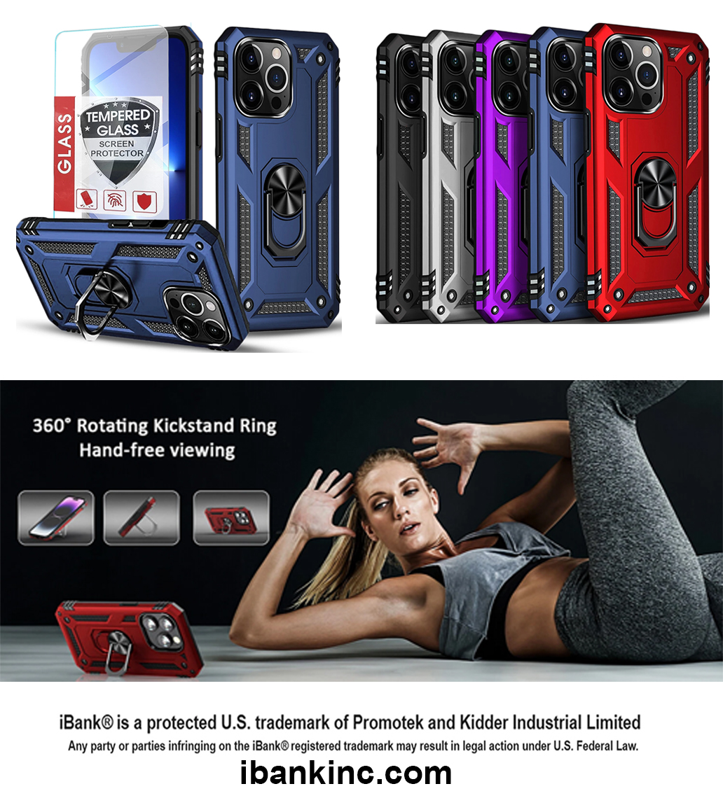 iBank ® Metal Ring Holder Case compatible with iPhone 17/26/15/14 Pro Max Air + Tempered Glass