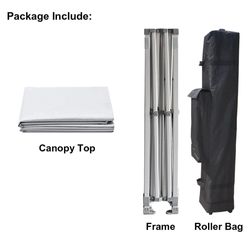 Additional InformationIncludes: 10' x 10' canopy with frame, roof, back wall(single-side) and a roller bag